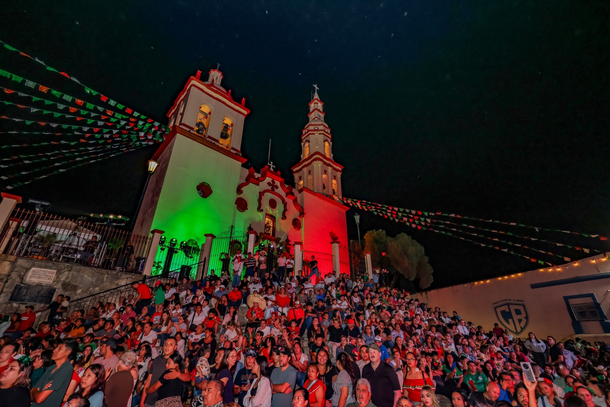 Santiago, N.L. a 16 de septiembre del 2025.- “¡Viva México!”, gritó el Presidente Municipal, David de la Peña Marroquín, mientras miles de santiaguenses le respondían a una sola voz “¡Viva!”.