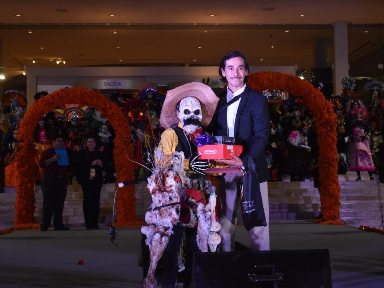 Categoría de Adultos: Juan Carlos Romero Rodríguez, fue el ganador de la categoría de adultos, su personaje fue “La Virgen María con el niño en brazos”, su caracterización de la imagen sagrada introducida en México durante el siglo XVI, muestra a María llena de gracia con el niño en brazos, vistiendo un ropón barroco pintado a mano con la imagen de la evangelización en México. Un manto alzado por palomas signo de pureza y una corona de 12 estrellas con el niño de gala. Detalles en oro y talavera destacando los elementos de la cultura mexicana.