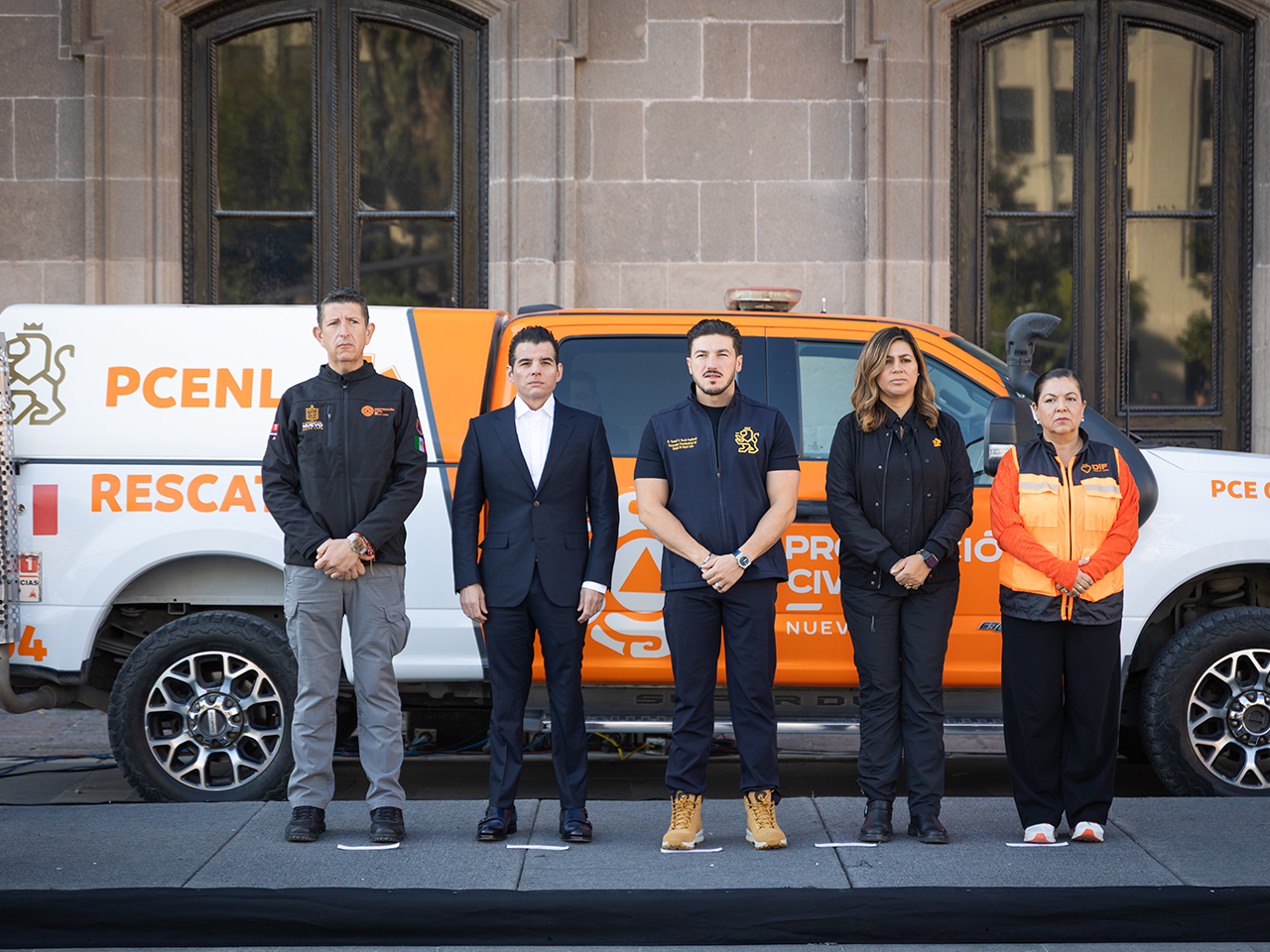 Participaron en la cadena de ayuda humanitaria Dulce Alejandre Mora, Subsecretaria de Protección Social y Oportunidades; Erik Cavazos, director de Protección Civil en el Estado; Gloria Bazán, Directora del DIF Estatal; el diputado local Mario Salinas; personal de Protección Civil; de Participación Ciudadana y elementos de Fuerza Civil.