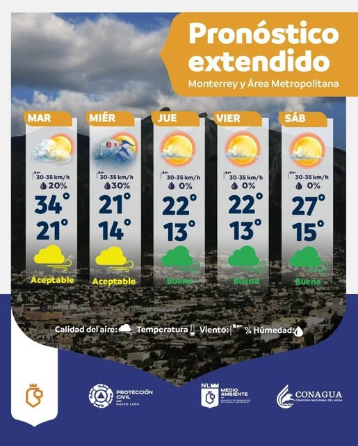 Nuevo León a 28 de octubre del 2025.- Protección Civil de Nuevo León mediante el aviso del Servicio Meteorológico Nacional informa que el frente frío número 11 recorrerá el norte y noreste del país, en interacción con una línea seca y la corriente en chorro subtropical, lo que ocasionará chubascos y vientos fuertes a muy fuertes en Nuevo León, además de un descenso notable de las temperaturas a partir de esta noche y durante los próximos días.