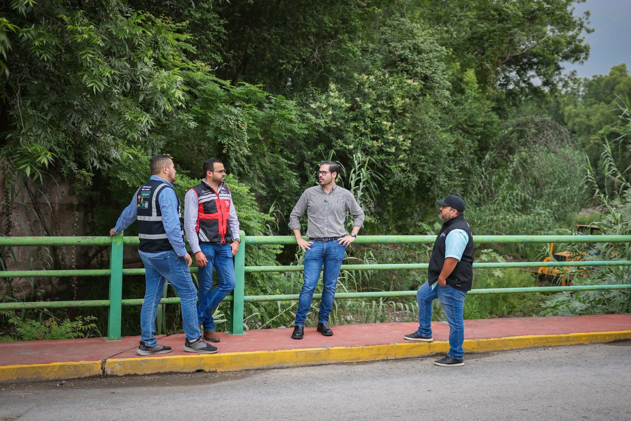 Maquinaria de la Secretaría de Servicios Públicos, a cargo del Secretario Jorge Alberto Espronceda Tamez, retiran maleza y azolve para ampliar la capacidad hidráulica de los cauces y reducir la posibilidad de desbordamientos e inundaciones en caso de lluvias intensas.