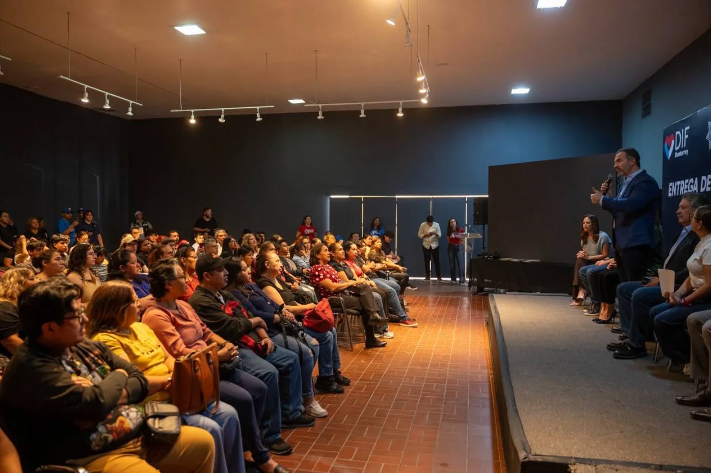 Al evento realizado en el Auditorio 360 del Pabellón Cultural de Monterrey asistieron Fernando Margáin, jefe del Gabinete municipal; Marcelo Segovia Páez, secretario de Administración; Eduardo Sánchez Quiroz, comisario General de la Secretaría de Seguridad y Protección Ciudadana; e Ivonne Álvarez, directora General del DIF.
