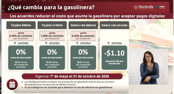 Los acuerdos reducen el costo que asume la gasolinera por aceptar pagos digitales que en el caso de débito y de valeras de red abierta es de 2.57 pesos; y para la de crédito de 7.45 pesos; en el caso de la valera de red cerrada, se dará una reducción de 1.10 pesos, informó el secretario de Hacienda, Édgar Amador.