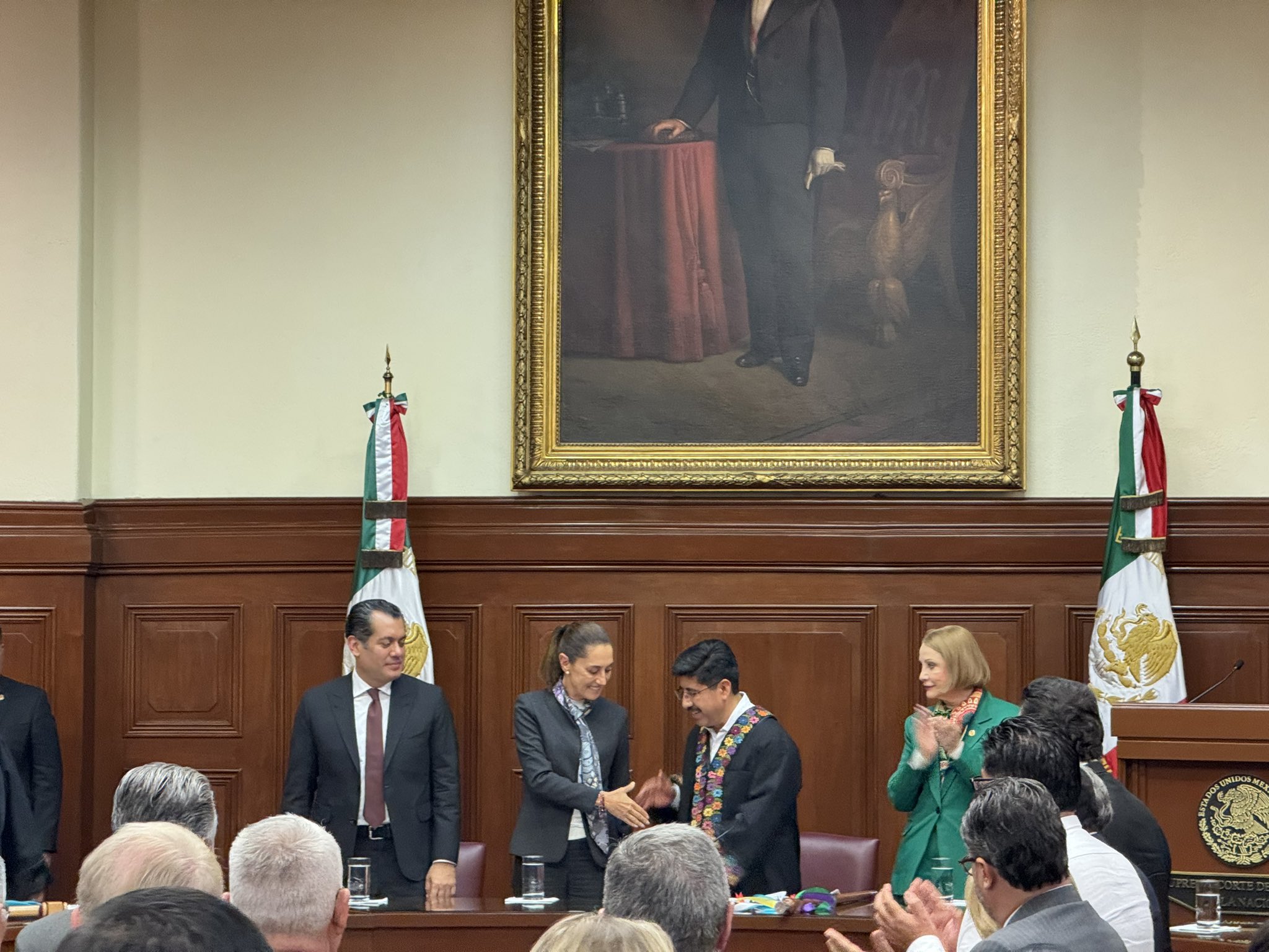 Además de la presienta Sheinbaum, al acto acudieron los presidentes de las Cámaras de Senadores y Diputados, Laura Itzel Castillo y Sergio Gutiérrez Luna, respectivamente.