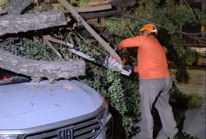 Durante la madrugada fueron atendidas más de 60 llamadas de auxilio, la mayoría relacionadas con árboles caídos, cables tirados en la vía pública y anuncios dañados o destruidos debido a las fuertes ráfagas de viento