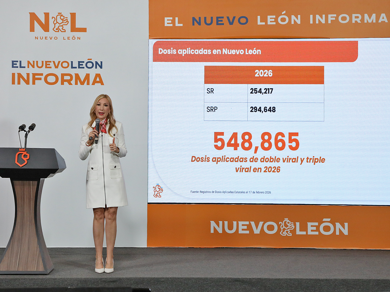 En el Nuevo León Informa, la Secretaria de Salud, Alma Rosa Marroquín Escamilla, destacó que el personal de salud está haciendo un gran esfuerzo por inmunizar a la comunidad y en lo que va del año ya se han aplicado 548 mil 865 dosis, pero es necesario alcanzar una cobertura del 95 por ciento en la población.
