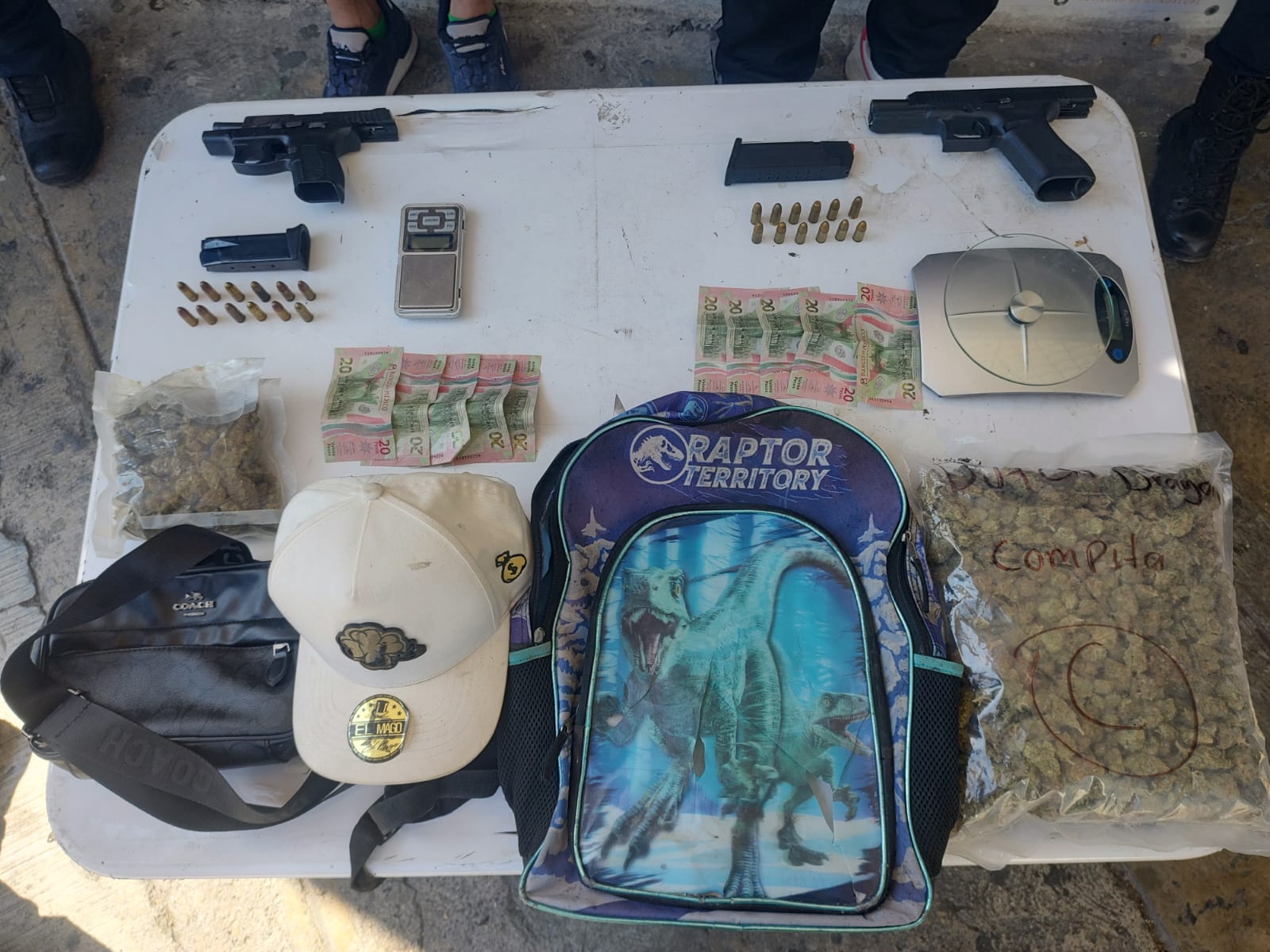 Cae pareja de malandrillos con yerba y armas