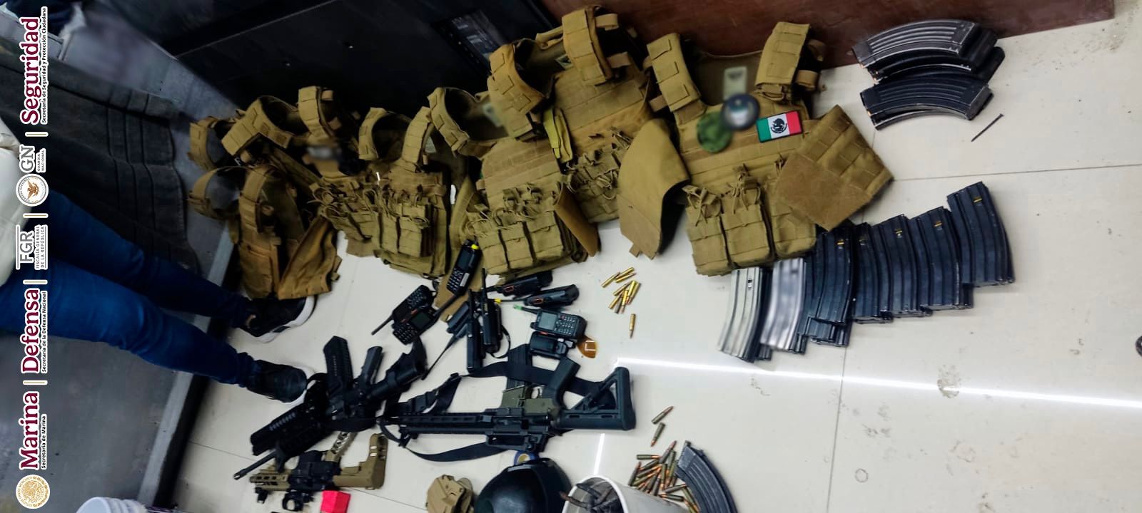 Durante el operativo de captura se aseguraron armas largas, una granada y equipo táctico.