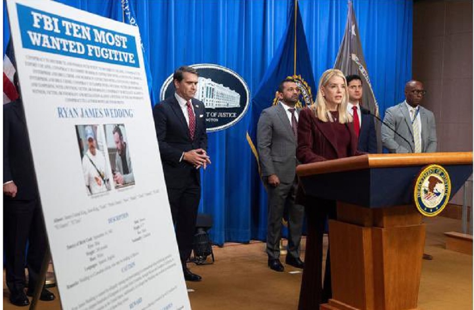 La fiscal general, Pam Bondi, posteó que «bajo mi dirección, agentes del @FBI han detenido a otro miembro de la lista de los diez más buscados del FBI: Ryan Wedding».