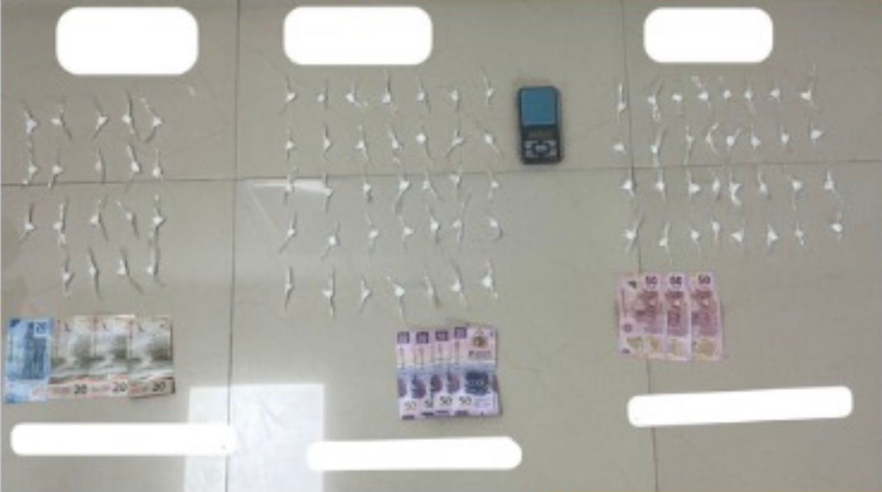 En el vehículo y en su persona, los tres detenidos llevaban 82 envoltorios plásticos con la misma sustancia, además de dinero en efectivo y una báscula digital.