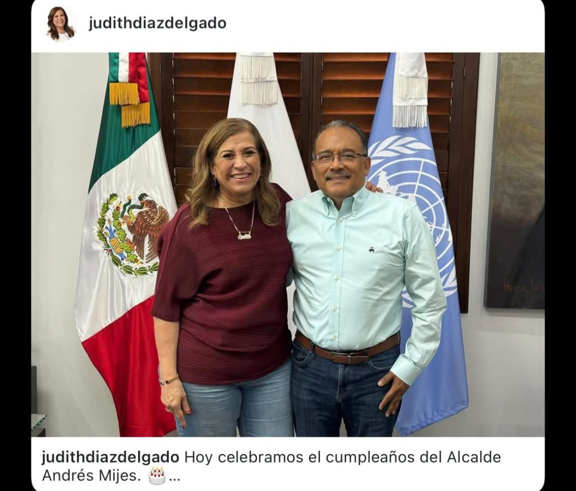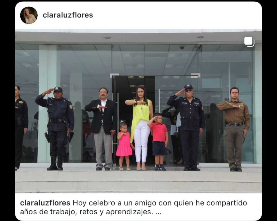 La felicitación de Clara muestra reconocimiento a Mijes, pero es interesante que escoge una foto en la que ambos rinden honor a una institución superior…