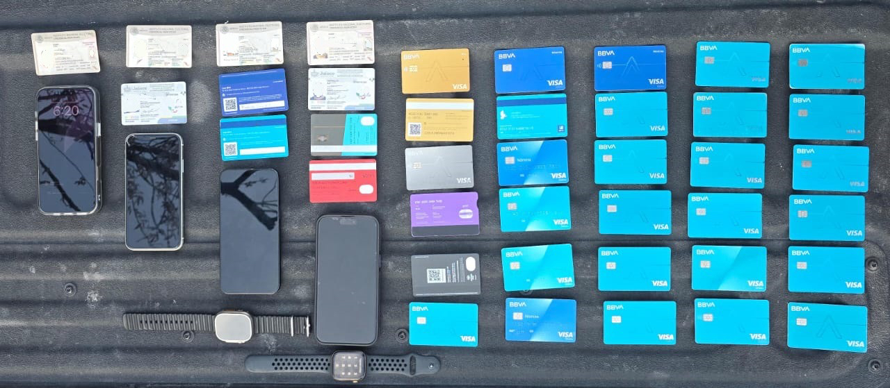 Al portar más de 30 tarjetas bancarias, cuatro jóvenes fueron detenidos por oficiales de la Policía de Monterrey, a bordo de un vehículo que participó el viernes en un hecho delictivo en Saltillo, Coahuila.