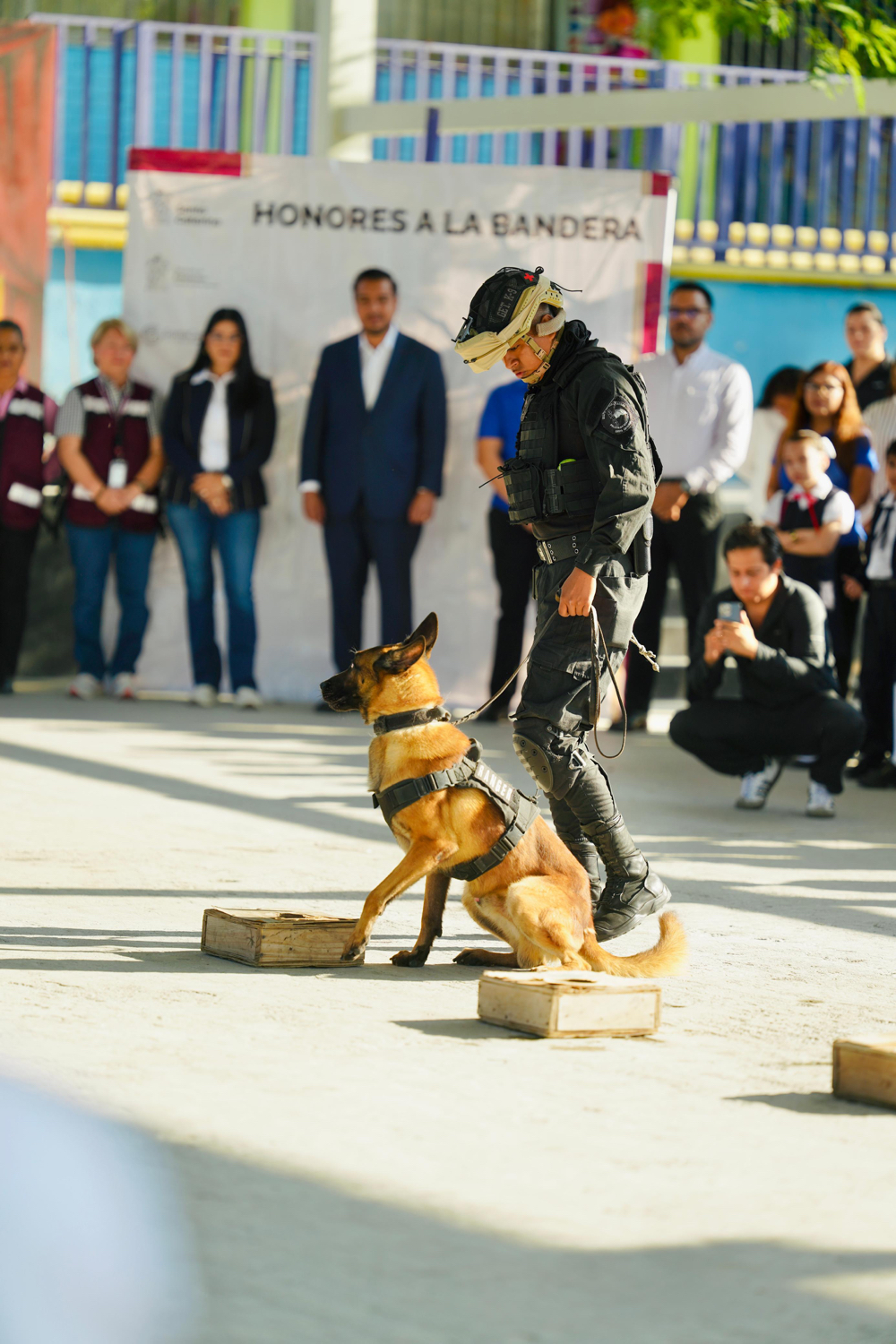El Gobierno de Santa Catarina impulsa la prevención de las adicciones y la violencia desde la niñez, a través de pláticas y la demostración del equipo K9 de la Secretaría de Seguridad Pública y Vialidad dirigido a alumnos de educación básica.