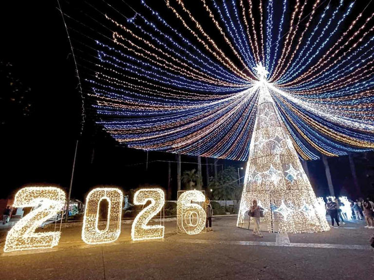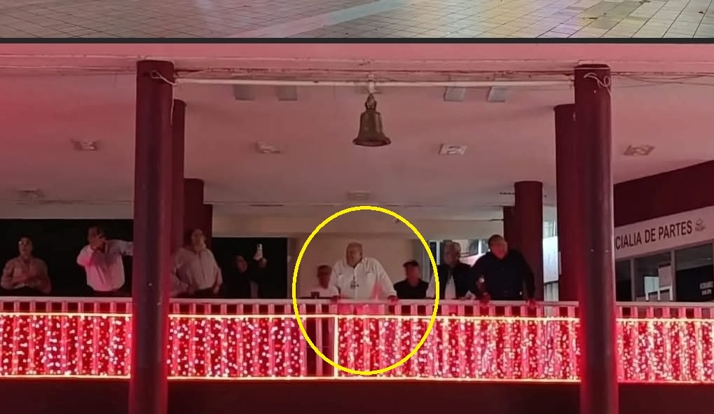 Poza Rica, Veracruz a 3 de diciembre del 2025.- El tradicional encendido del árbol navideño dejó este año una imagen inesperada: la plaza principal prácticamente vacía y el alcalde Fernando Remes observando desde el balcón del Palacio Municipal de Poza Rica, en Veracruz.