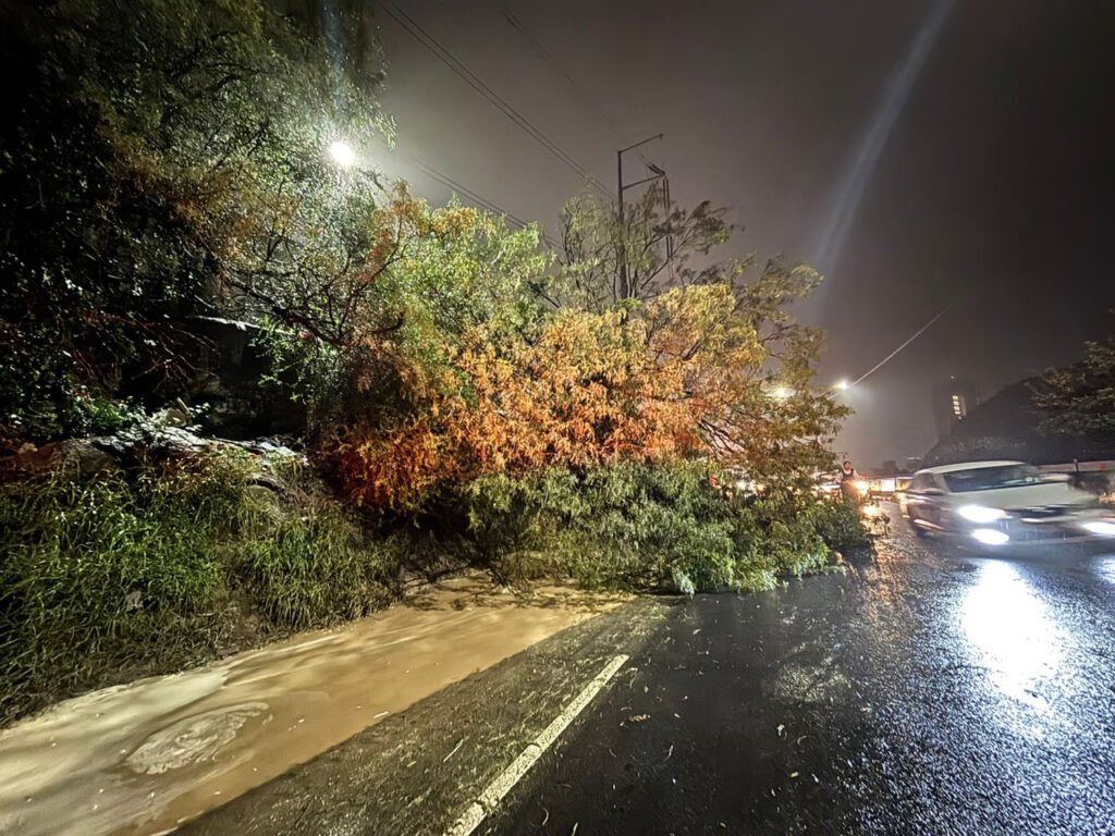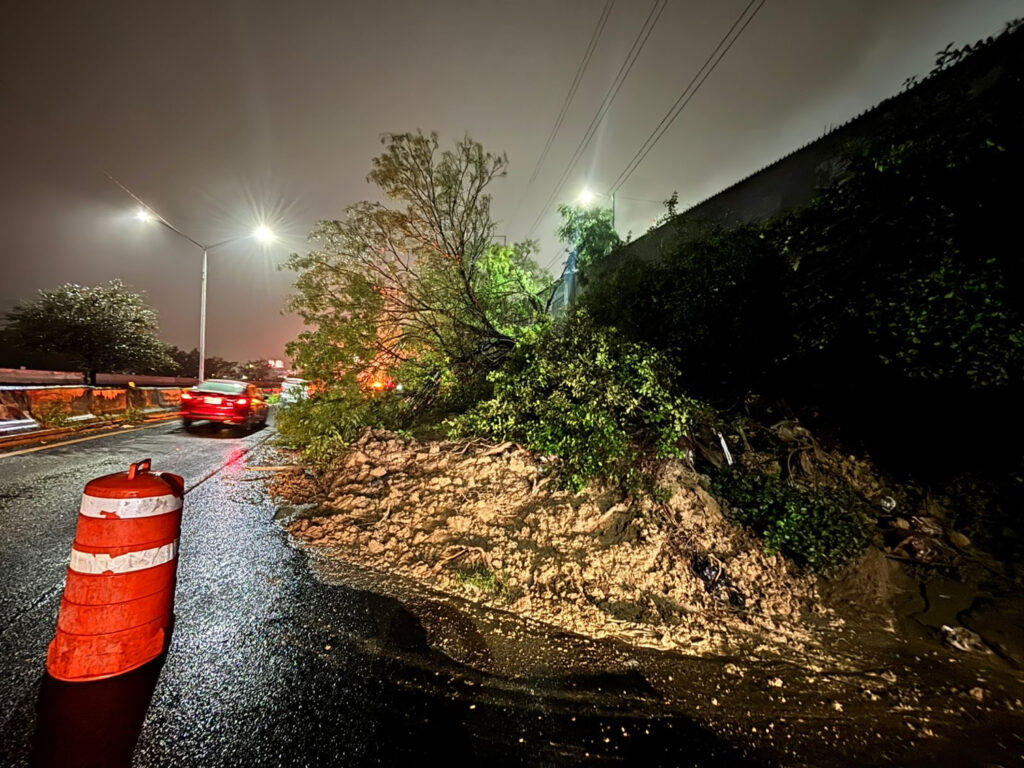Cerca de las seis de la mañana, cuando el tráfico estaba a punto de entrar en crisis, elementos de Servicios Públicos de Monterrey despejaron el área, aunque se mantiene el monitoreo del área desde la que se precipitaron árbol y tierra.