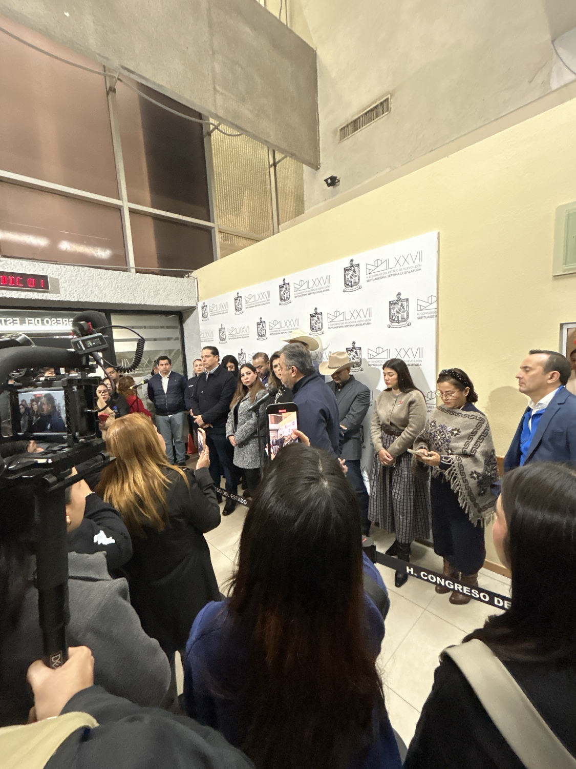 Junto con su dirigente estatal, Policarpo Flores Peña, los legisladores plantearon varios temas en voz de Víctor Pérez Díaz.