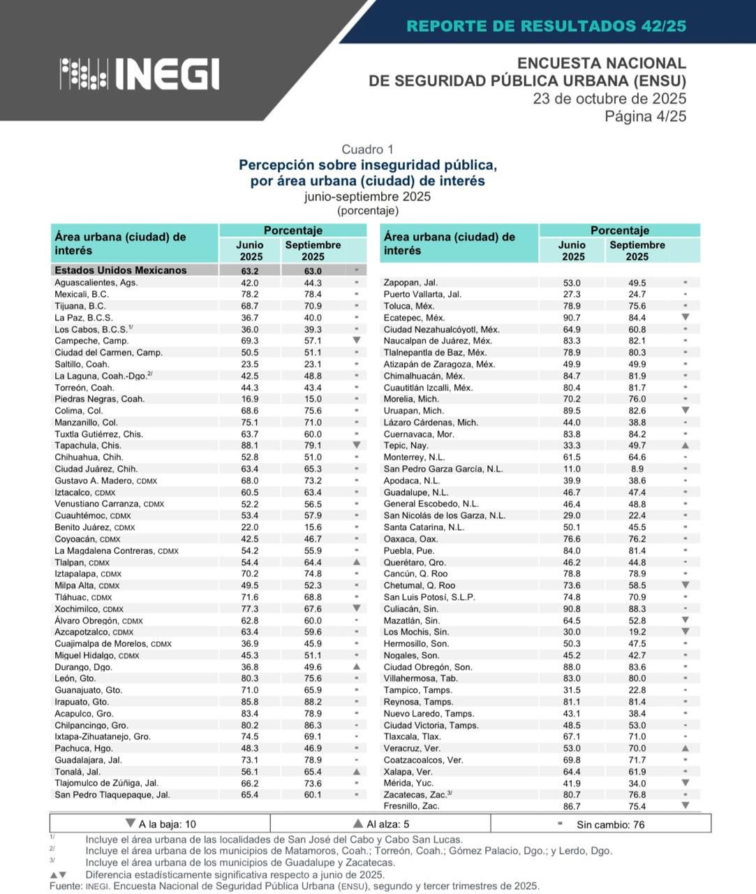 De acuerdo a la Encuesta Nacional de Seguridad Pública Urbana (ENSU) del INEGI