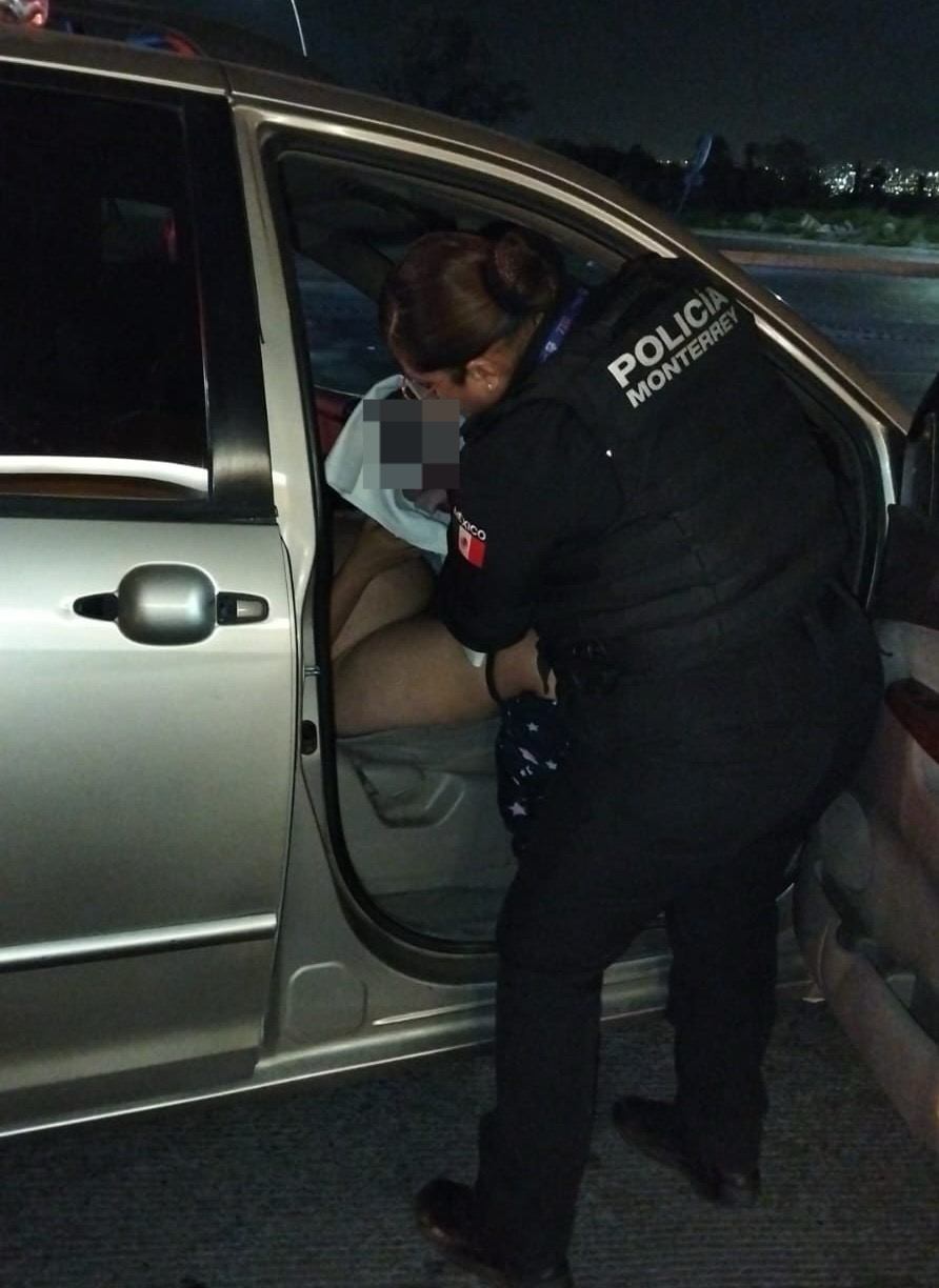 Oficiales de la Policía de Monterrey auxiliaron a una mujer en labores de parto, para el nacimiento de un bebé, cuando era trasladada en un vehículo particular y no pudieron llegar al hospital, en la colonia Cumbres del Sol.