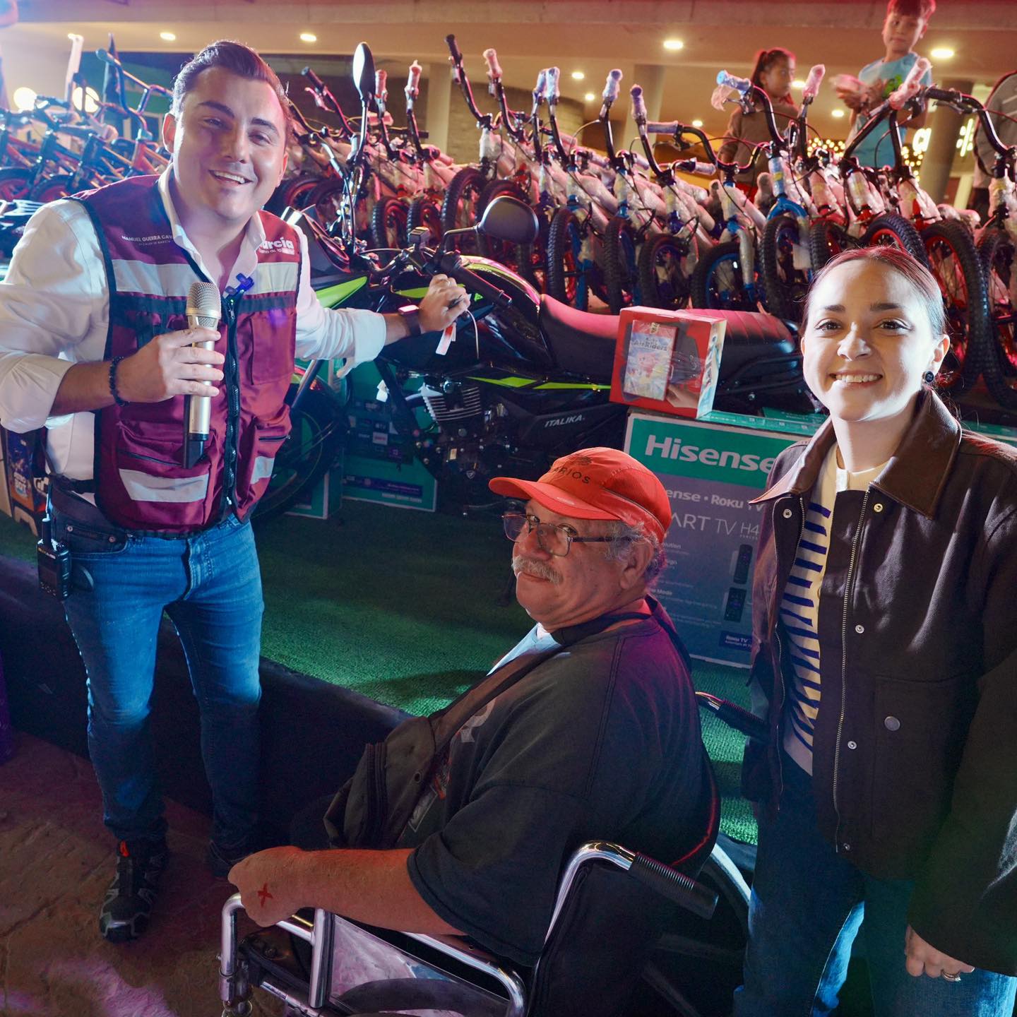 Durante la actividad, se llevó a cabo la entrega de diversos premios, entre los que destacaron bicicletas, pantallas, consolas de videojuegos y motocicletas. Además, se distribuyeron bolsas de dulces entre las y los asistentes.
