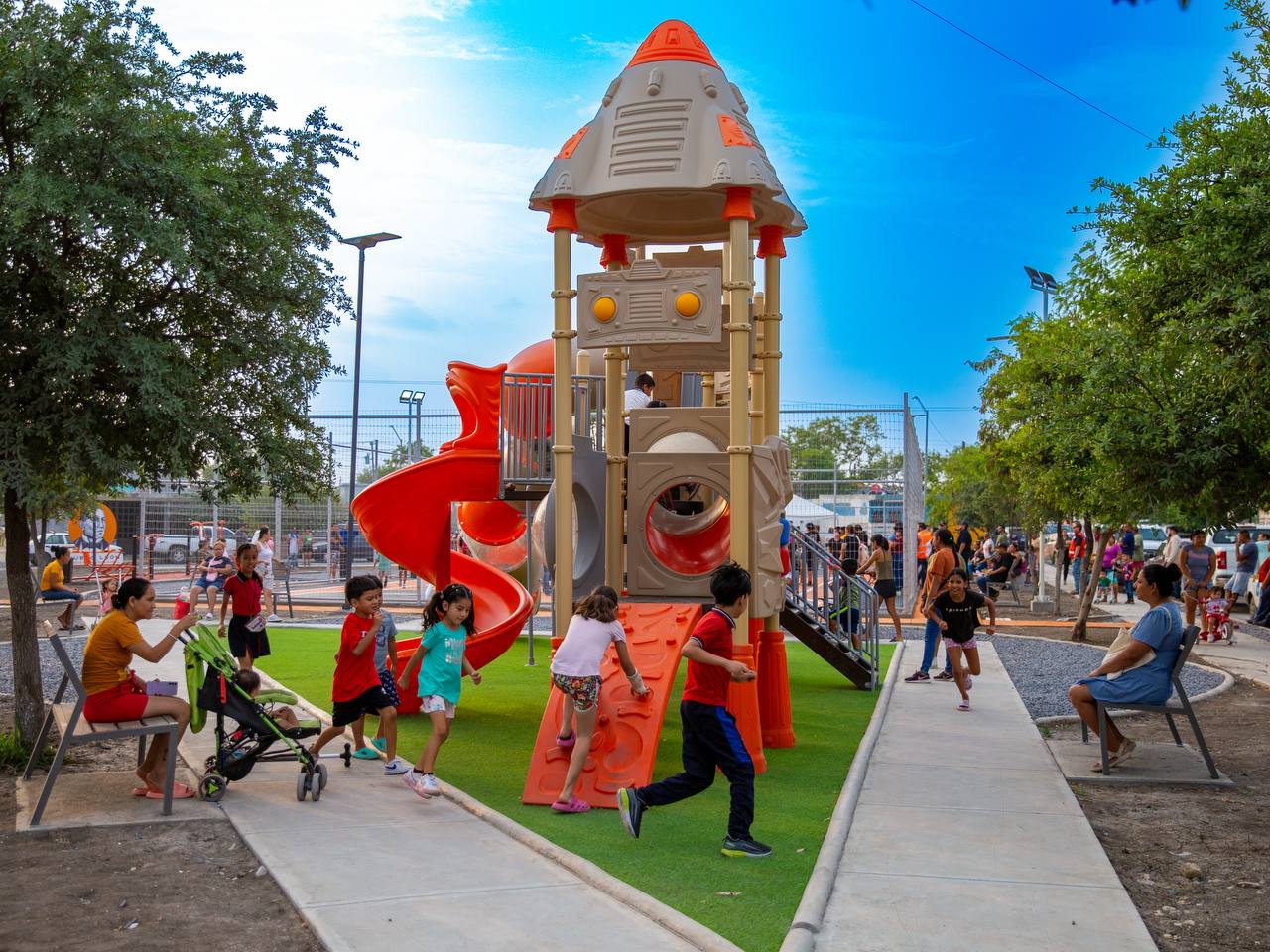 Mientras tanto, en Villas de San José, el espacio, anteriormente un terreno baldío, fue completamente rehabilitado en tan solo 90 días para convertirse en un parque multifuncional al servicio de colonias como Rinconada de San Juan y Villas de San Juan.