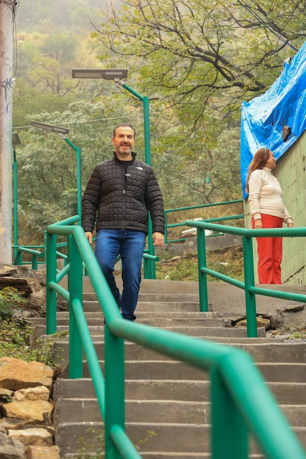 Monterrey a 1 de diciembre del 2025.-Como parte del programa Transformando Monterrey, el Gobierno de la ciudad entregó este lunes una nueva red de agua potable, tres tramos de escalinatas y la pavimentación con concreto hidráulico de una importante arteria en la colonia Cerro de La Campana.