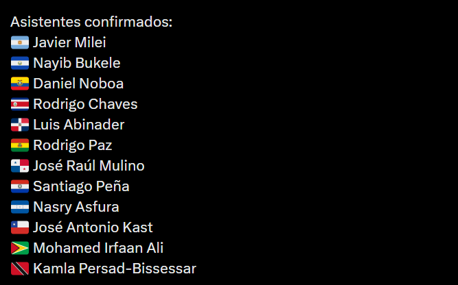 Entre los países convocados destacan Argentina, El Salvador, Ecuador, Paraguay y Honduras, cuyos gobiernos han mostrado afinidad con la agenda política del mandatario estadounidense.