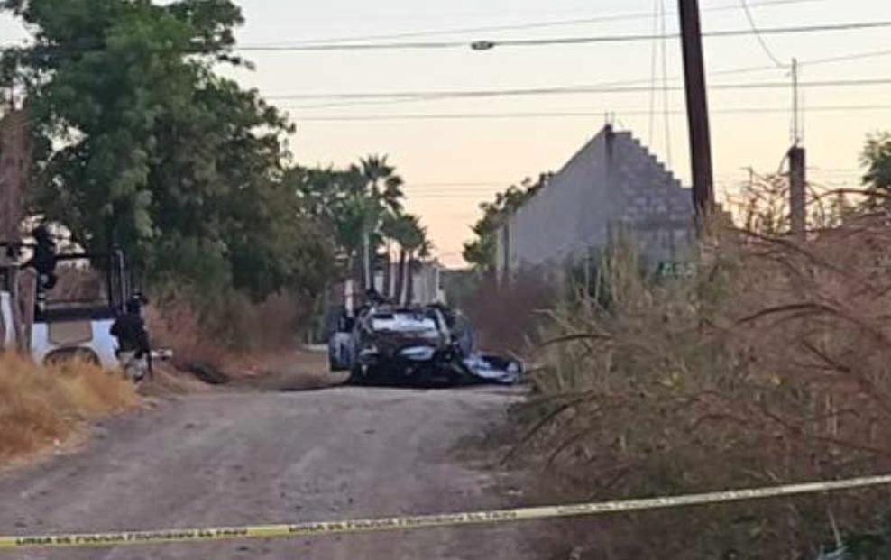 Presuntamente se debió al lanzamiento de un artefacto explosivo desde un dron. Elementos del Ejército aseguraron la zona en donde quedó el vehículo calcinado.