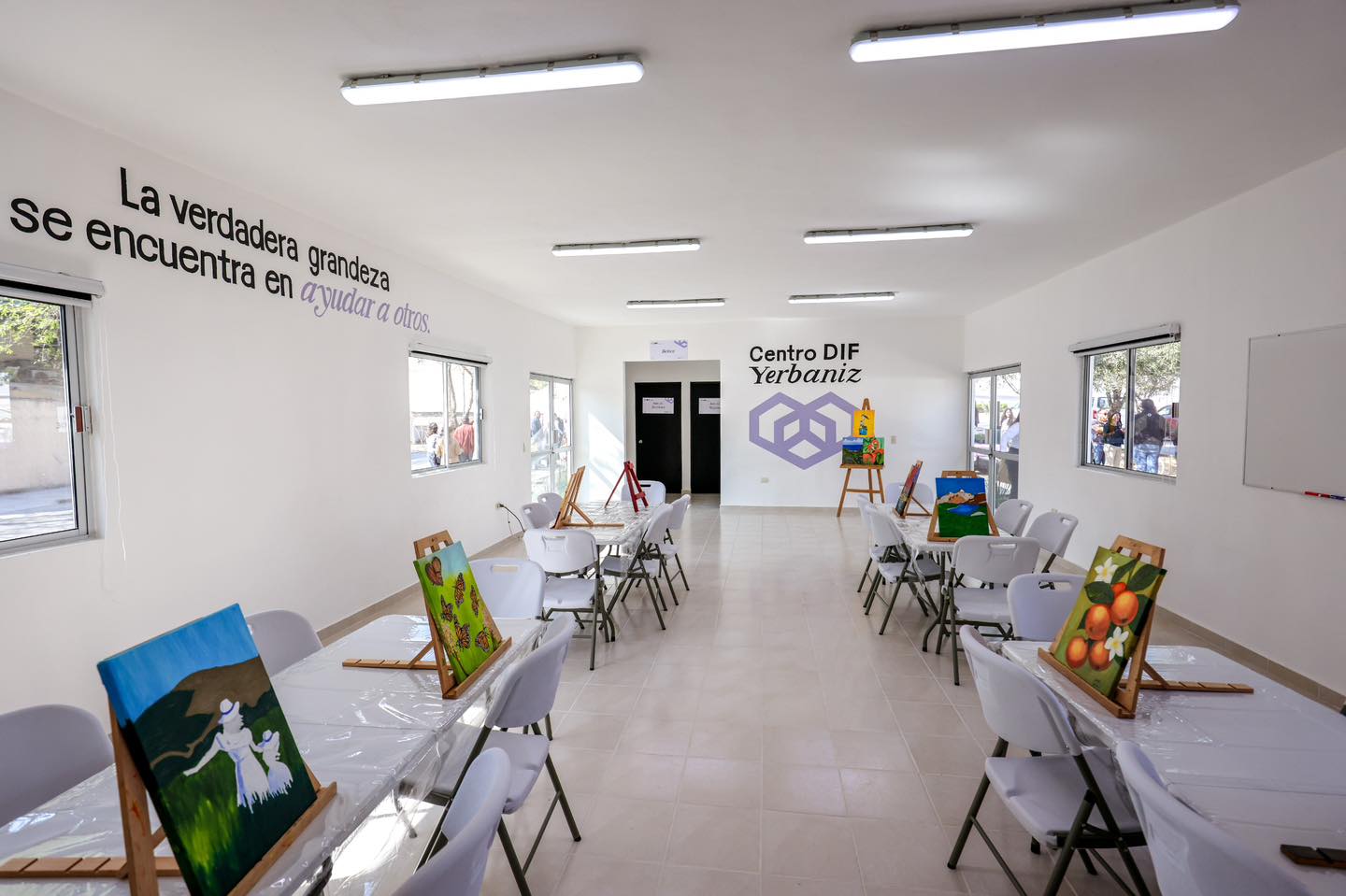 El nuevo Centro DIF contempla 132 metros cuadrados de rehabilitación de área total, 120 metros cuadrados de losa de concreto, 80 metros cuadrados de firme de concreto, además de la instalación de luminarias, climas y sanitarios, mejorando significativamente la infraestructura para la atención ciudadana.