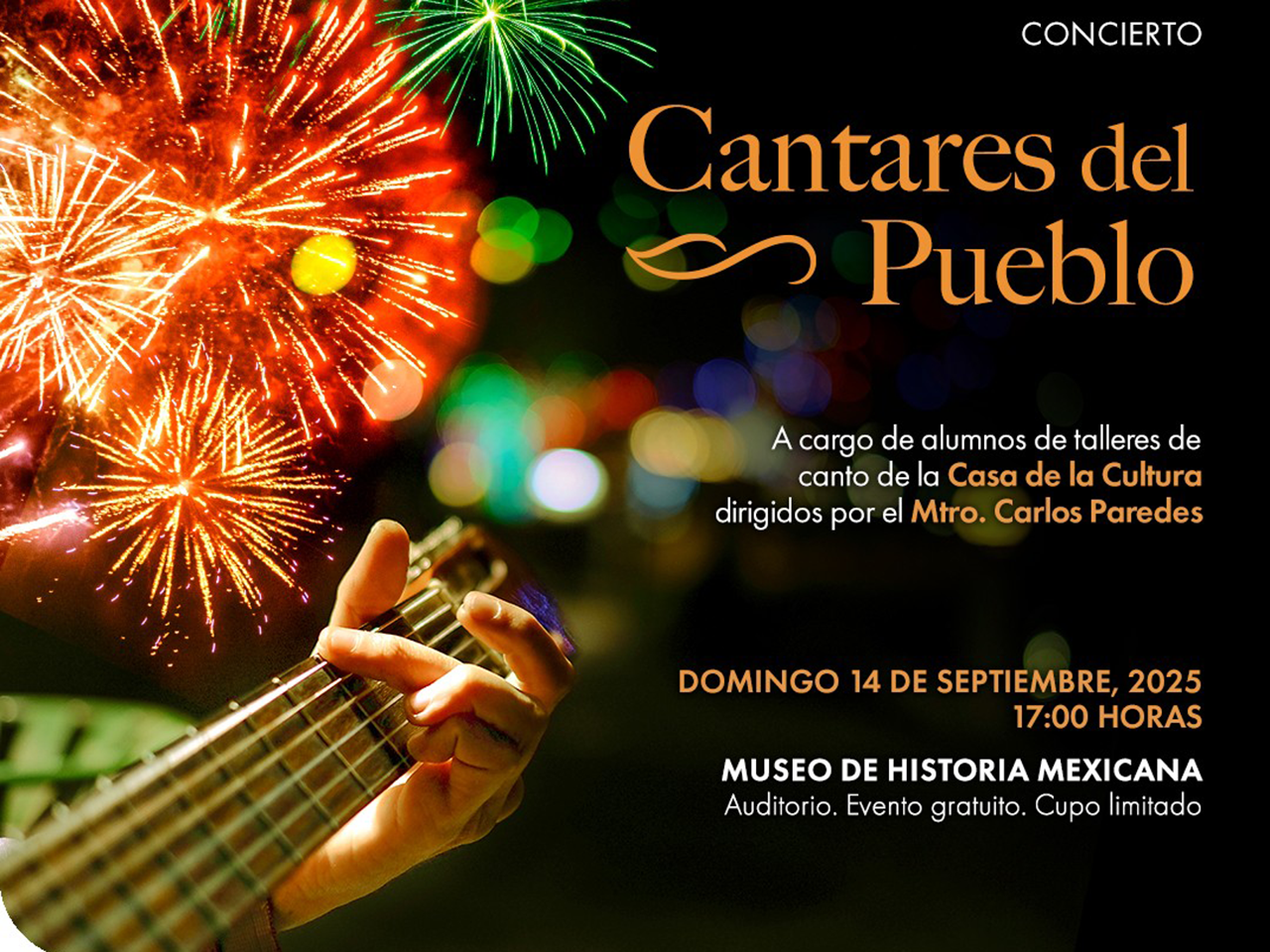 En los días de celebración nacionalista, el domingo 14 de septiembre a las 17:00 horas en el auditorio del Museo de Historia Mexicana se presentará Cantares del Pueblo con música nacionalista y popular.