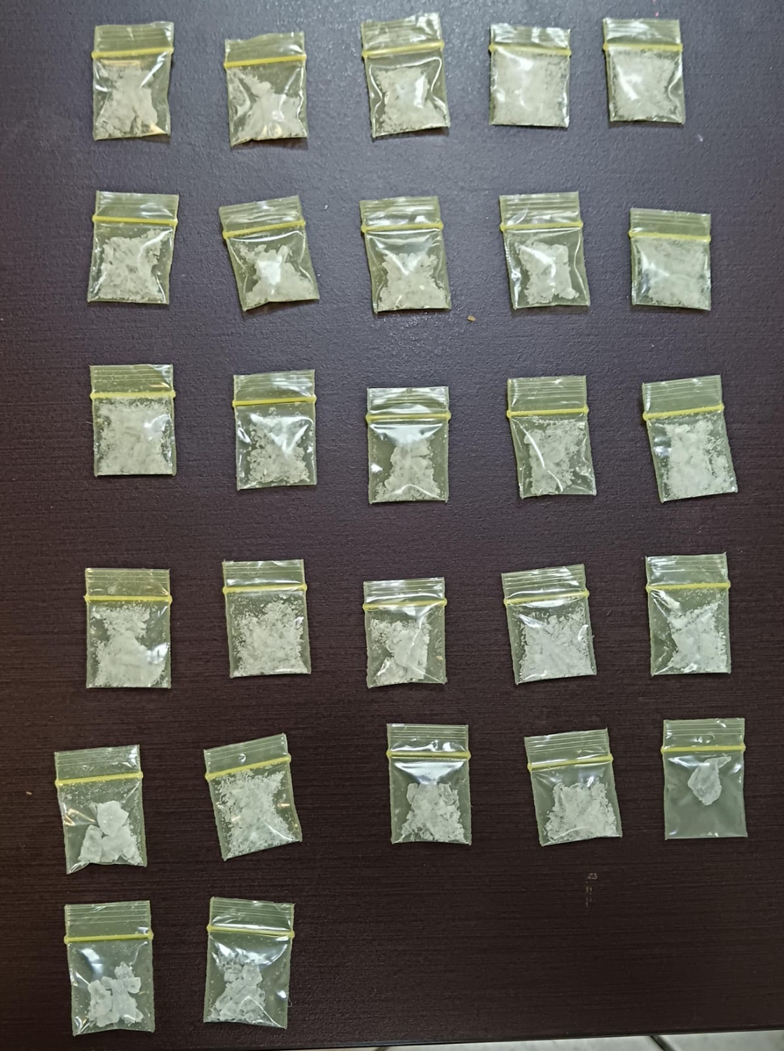 Al realizarles una revisión, le encontraron a uno de ellos 24 envoltorios con una sustancia sólida similar a la cocaína tipo cristal, mientras que al otro detenido se le encontraron 27 envoltorios del mismo enervante.