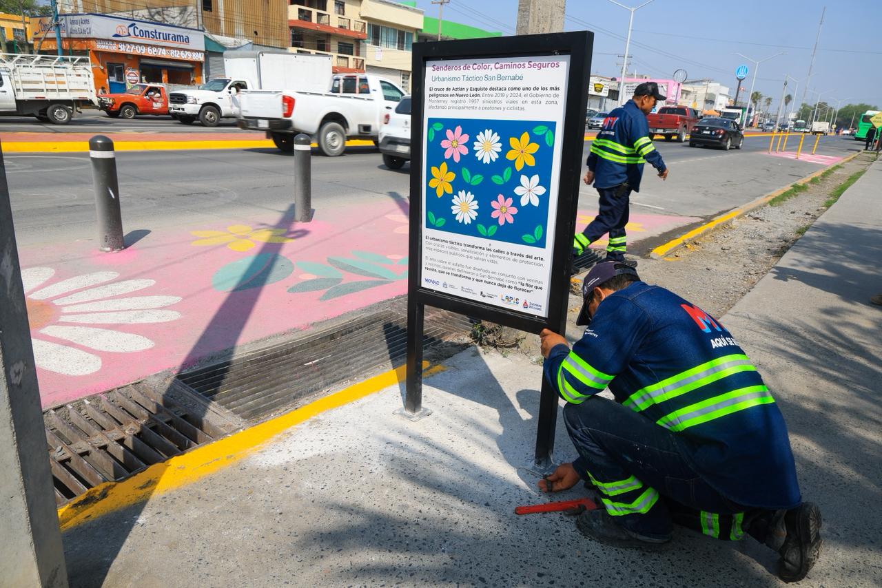 El alcalde Adrián de la Garza Santos, inauguró el “Sendero de color, camino seguro” en el crucero de avenida Aztlán y Esquisto en la colonia San Bernabé.