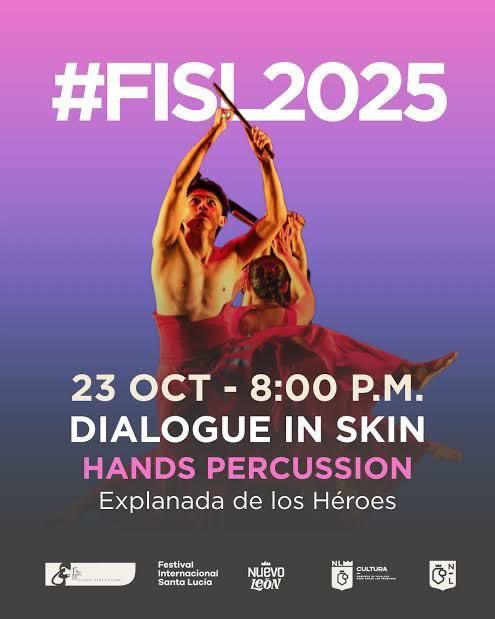 Monterrey, Nuevo León a 21 de octubre del 2025.- Los espectáculos del Festival Internacional Santa Lucía continúan llenando de sorpresas a la ciudadanía, en esta ocasión el Gobierno de Nuevo León invita a las familias a disfrutar el espectáculo «Dialogue in Skin. Hands Percussion».