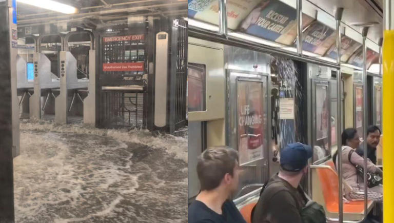 Entre las 19:00 y las 20:00 horas cayeron 2.07 pulgadas (52 mm) de lluvia en apenas 60 minutos —solo superadas por el huracán Ida, en 2021— lo que desbordó túneles y colapsó estaciones como la 28th Street en Chelsea y Penn Station, dejando pasajeros atrapados y líneas suspendidas.