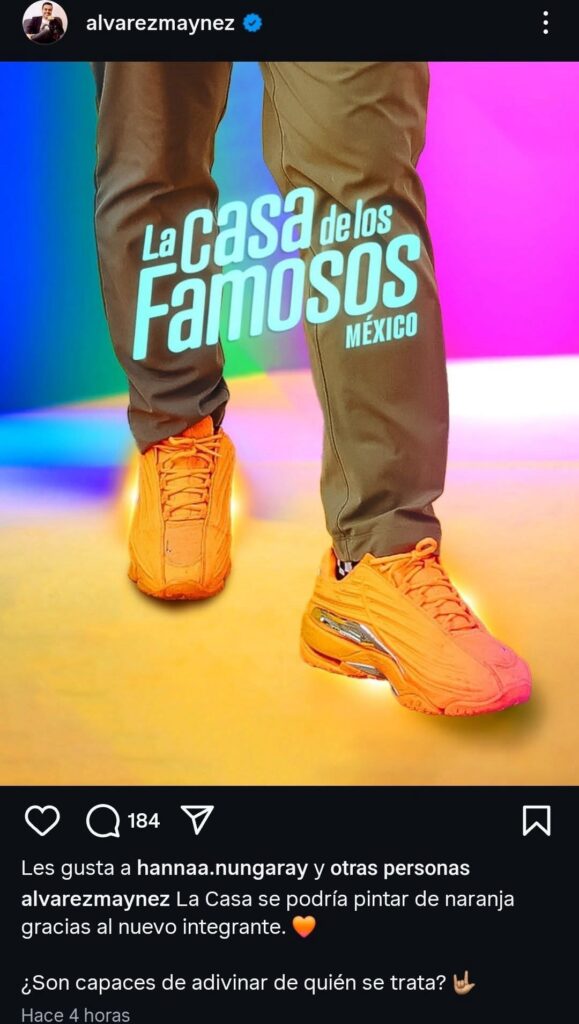 En este post se aprecian unos tenis naranjas fosforescentes acompañado del logo del programa y con la leyenda “La casa se podría pintar de naranja gracias al nuevo integrante”.