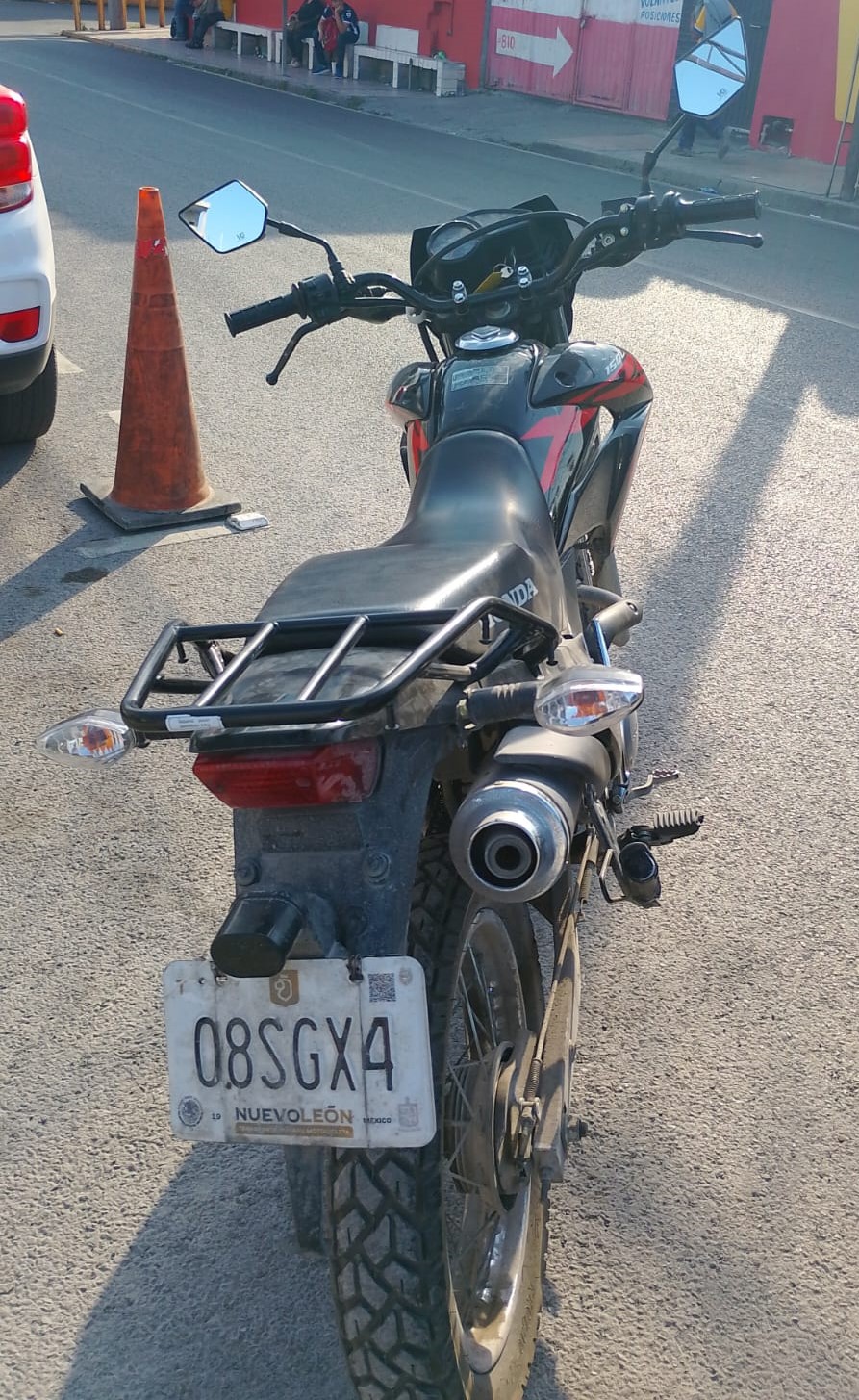 Elementos de la Policía de Monterrey realizaban labores de vigilancia por el sector, cuando personal de C4 les reporta una motocicleta Honda en color negro y placa de circulación 08SGX4, que cuenta con reporte de robo la metálica, por lo que oficiales se abocan a la búsqueda.