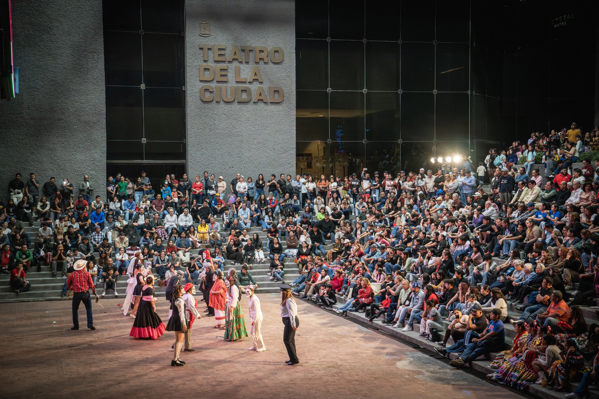 Nuevo León a 10 de diciembre del 2025.- Las miradas de sorpresa se multiplicaron por cientos cuando por el Escenario Al Aire Libre del Teatro de la Ciudad desfilaron con sus llamativas indumentarias y festiva algarabía cada uno de los grupos participantes del primer Encuentro de Danzas de los Pueblos Originarios “Prof. Jesús Baldemar Gutiérrez González”.