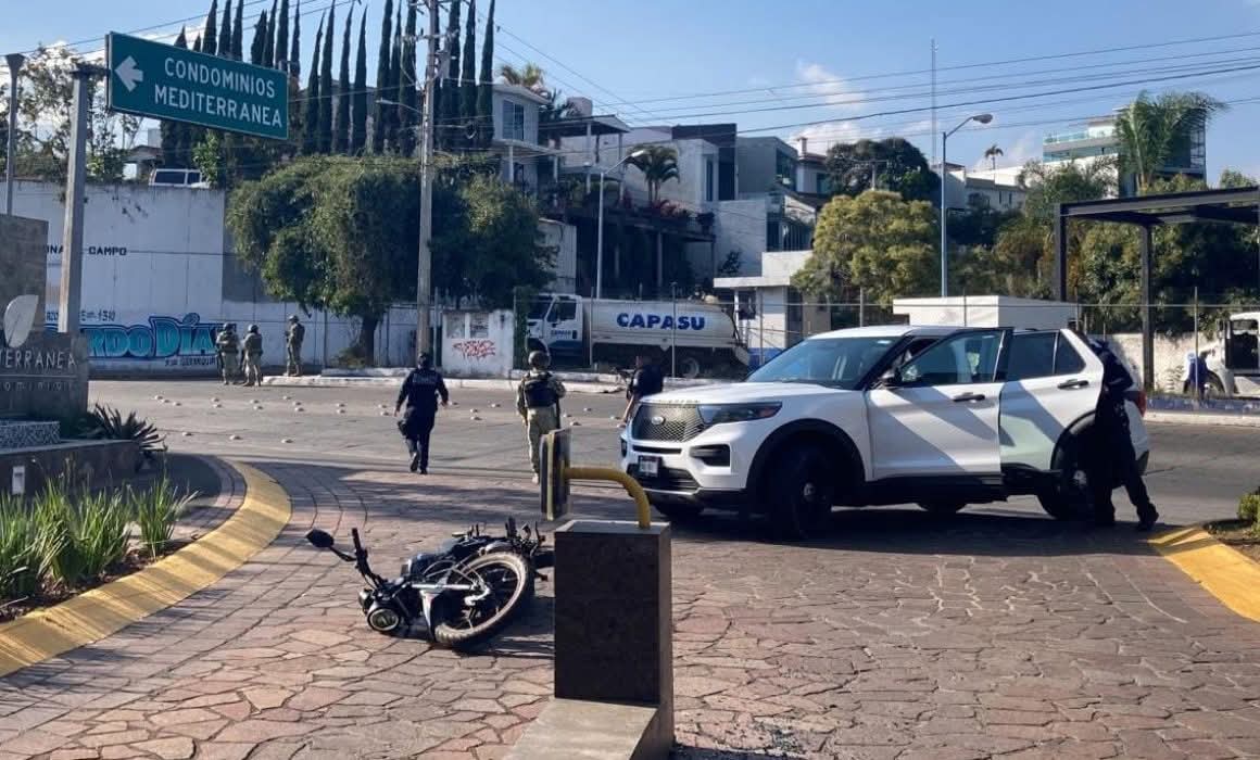 Los hechos ocurrieron sobre el viaducto que conecta con la colonia Jicalán, específicamente en el acceso principal a un fraccionamiento exclusivo de la zona. En este punto, tres sujetos intentaron apoderarse de una camioneta blanca mediante el uso de la fuerza.