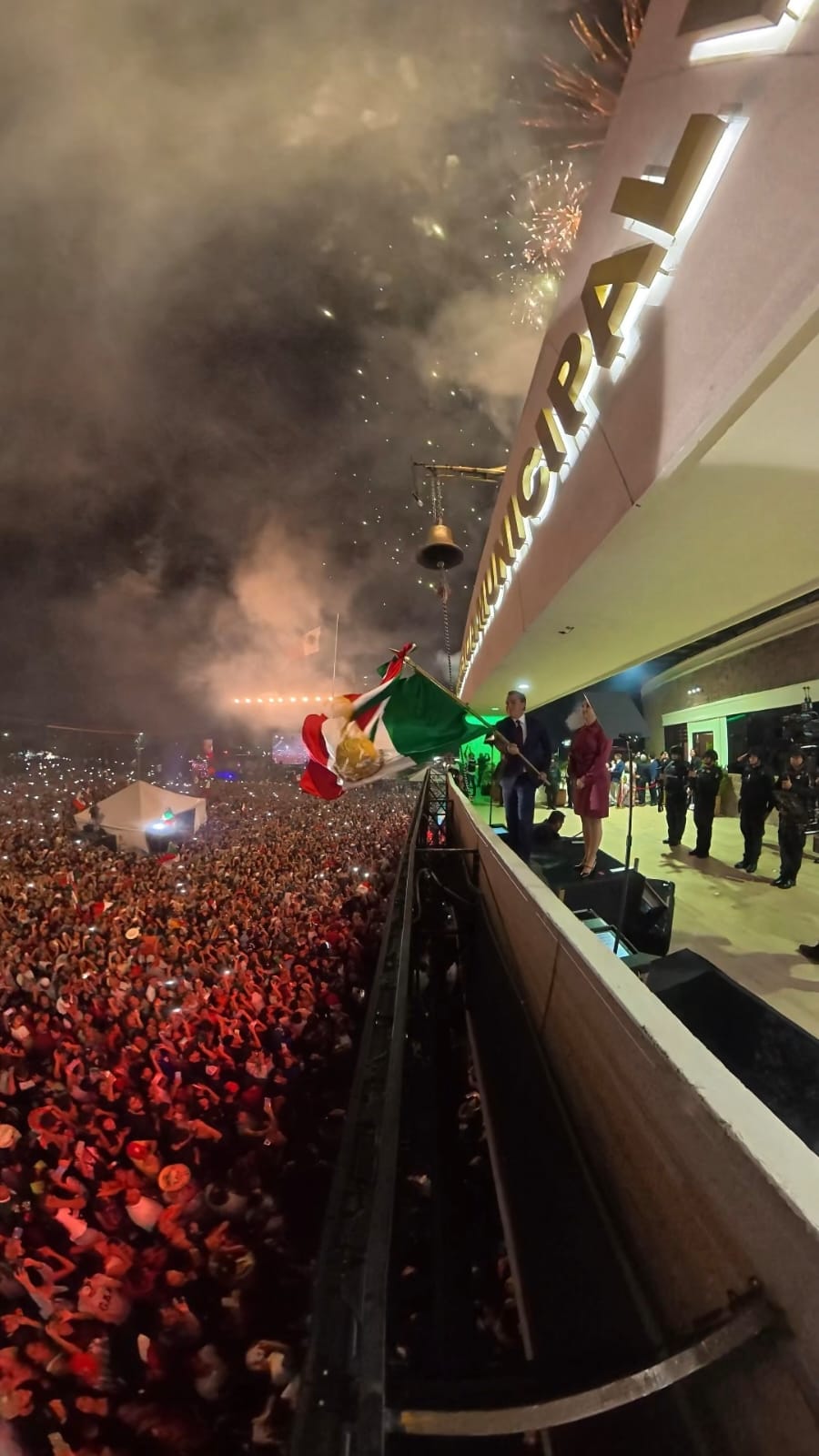 Desde el balcón de Palacio Municipal, tras la inauguración de la pantalla LED gigante de 32 metros de largo por 1.90 de alto, el alcalde pronunció con fuerza y emoción las palabras que hicieron vibrar a la multitud.