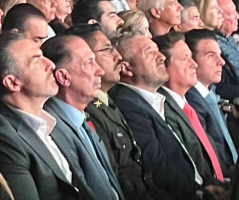EN LA PRIMERA FILA ADRIÁN de la Garza, Andrés Mijes, Mauricio Faráh, el propio Mike Flores, el fiscal Javier Flores, el diputado Javier Caballero…