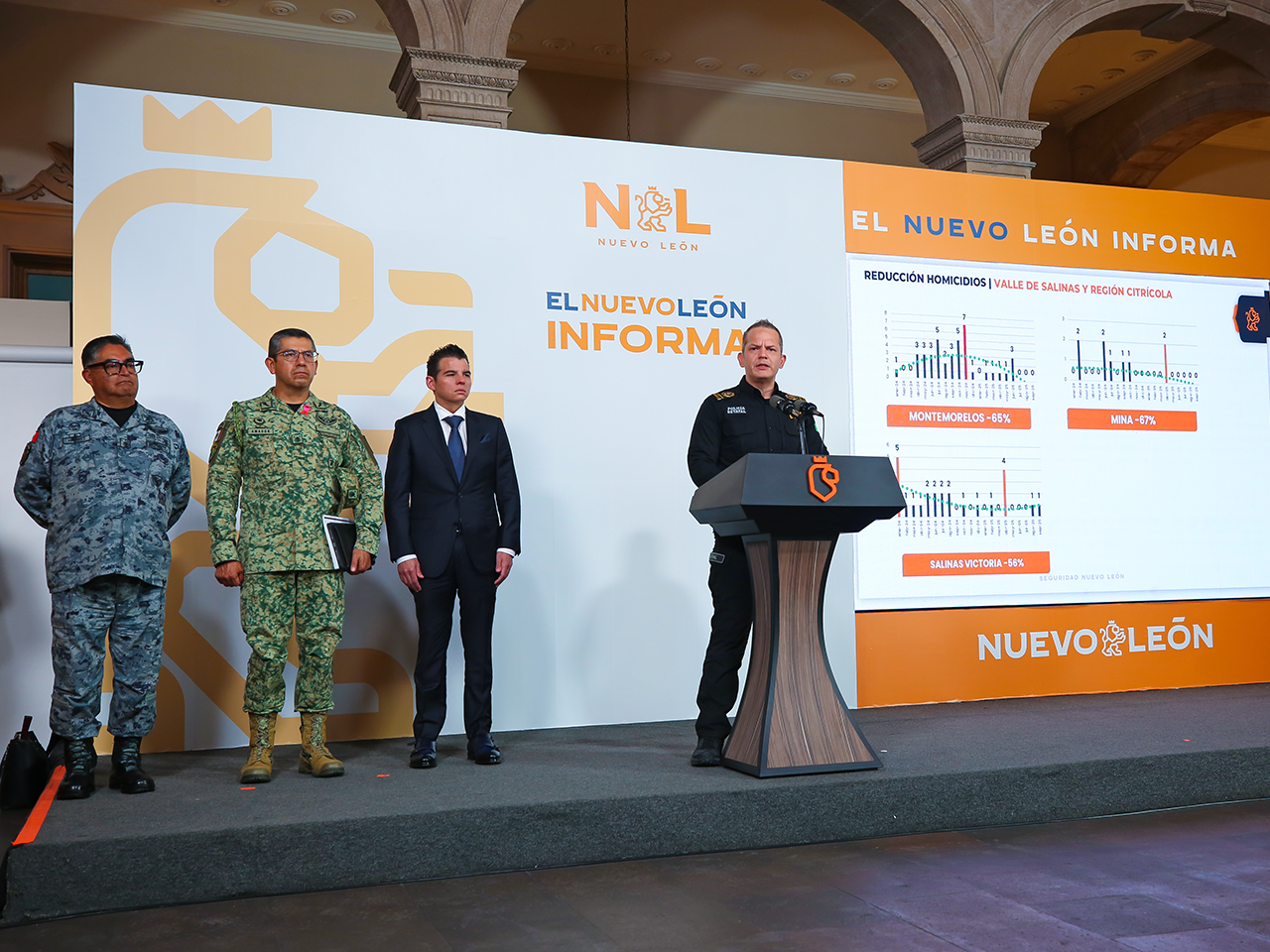 Dentro del Nuevo León Informa, el funcionario estatal resaltó que el trabajo conjunto de colaboración y coordinación con los alcaldes y/o secretarios de seguridad municipales, las policías estatales y federales mantiene la reducción en el promedio diario de homicidios.