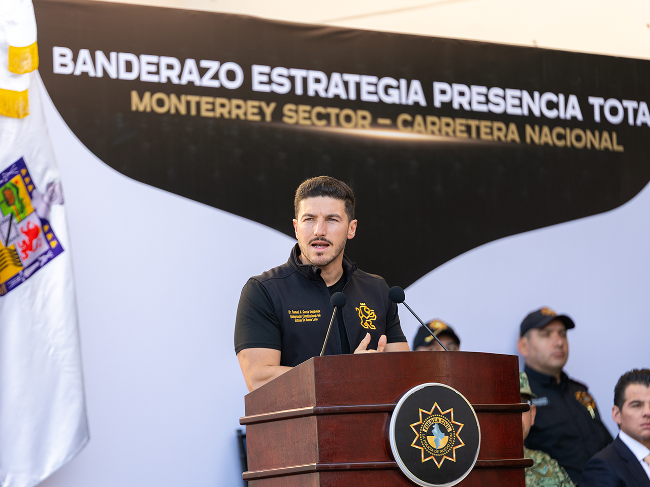 “Nuevo León no se va a esperar a un incidente, ni se va a esperar una tragedia para activarnos y desplegar el 100 por ciento de su policía estatal. Hoy como símbolo arrancamos en el sur de la ciudad donde está la carretera que es la más transitada de Nuevo León. Nuestra Carretera Nacional es por la que más vehículos transitan.