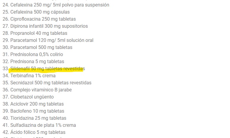 La lista enviada por la embajada de Cuba incluye más de 100 medicamentos, que van desde fármacos básicos hasta tratamientos de alta complejidad, además de Sildenafil, es decir Viagra.