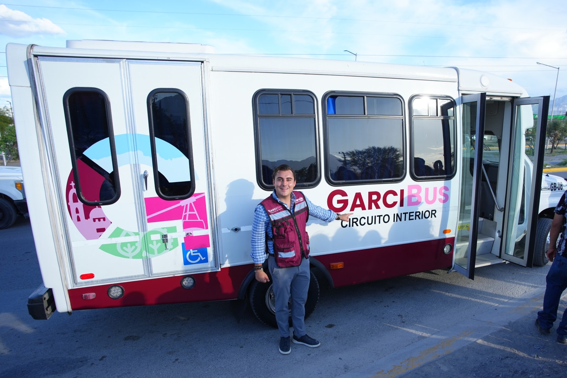 García a 26 de junio del 2025.- Ante el problema de movilidad que enfrentan estudiantes, obreros y en general lapoblación de García, el alcalde Manuel Guerra Cavazos dio el banderazo de salida al Garcibus Circuito Interior.