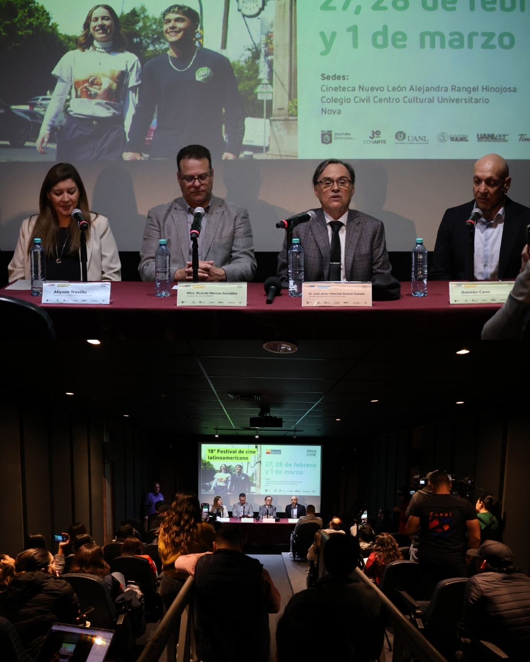 La conferencia contó con la participación de Allyson Treviño, Gerente senior de Relaciones con la Comunidad de Ternium; Damián Cano, Coordinador del Festival de Cine Latinoamericano en las tres sedes de Monterrey, Colima y Puebla; así como representantes de CONARTE y la UANL.