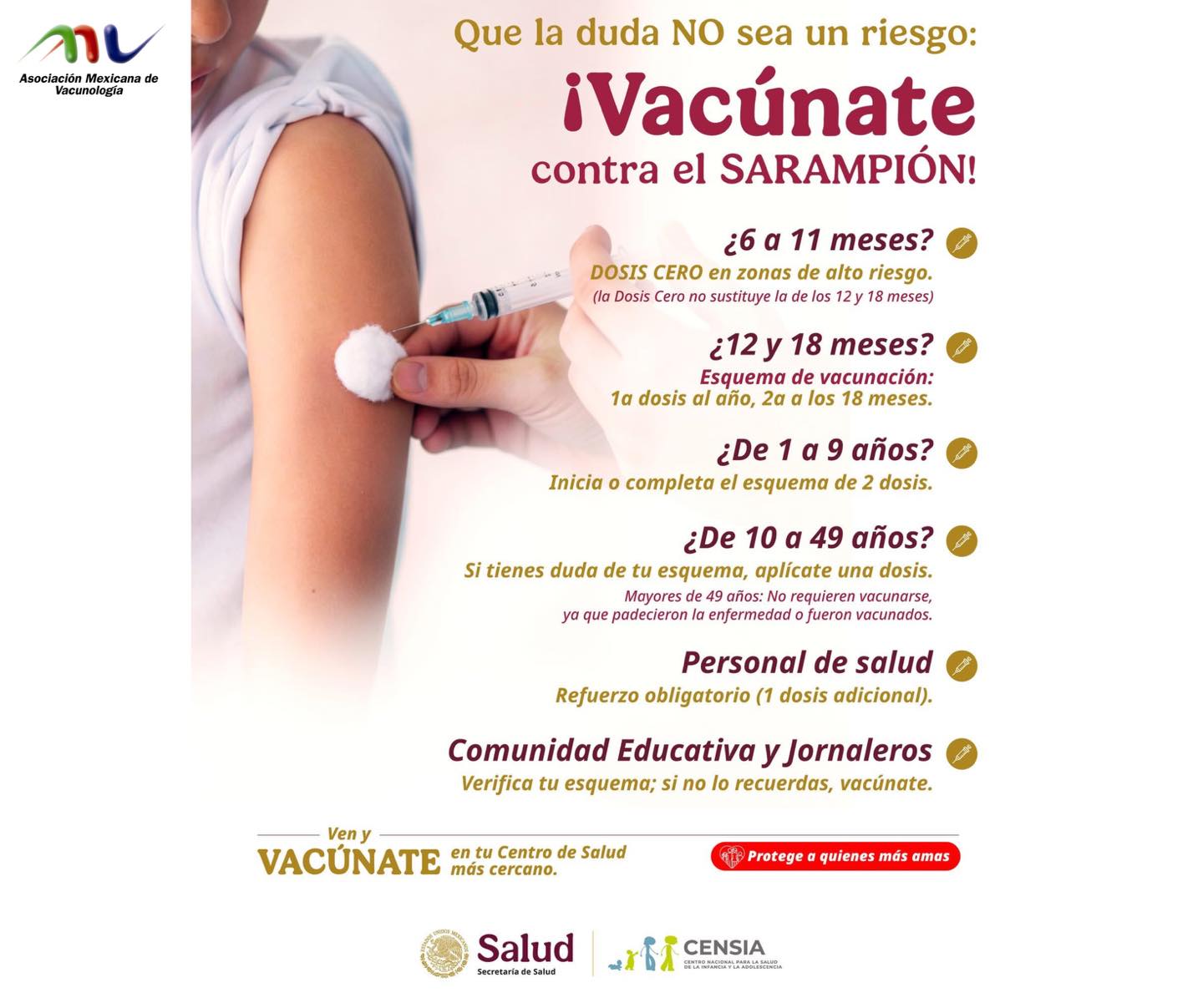 ¿Quiénes deben vacunarse contra el sarampión según la guía de CENSIA?