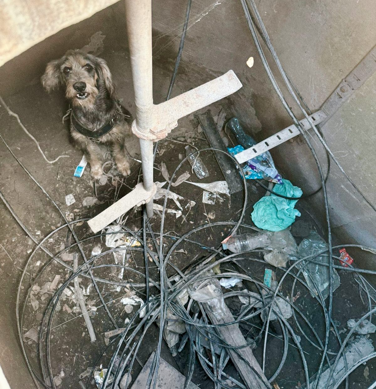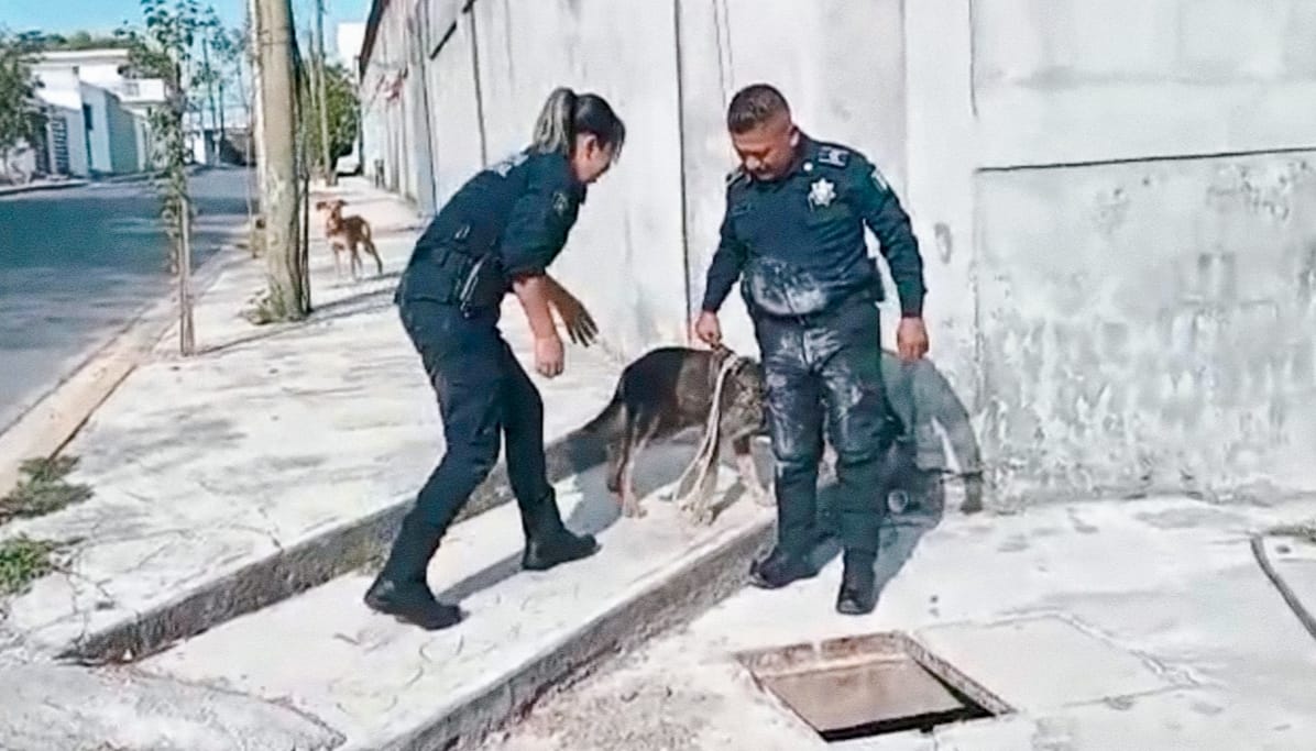 Primero, una oficial descendió para localizar al perro, y una vez ubicado, le colocó una cuerda para que desde el exterior otro policía lograra sujetarlo.