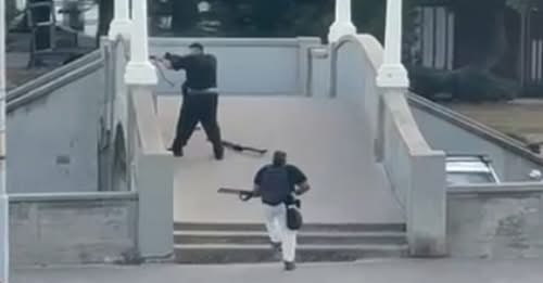 Agentes policiales respondieron al ataque y se produjo un intercambio de disparos, en el que dos policías resultaron heridos.
