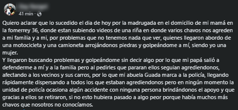 Es importante aclarar que las heridas del joven en el video fueron causadas por la riña, no por un atropello. La situación generó daños a vecinos y sus propiedades.