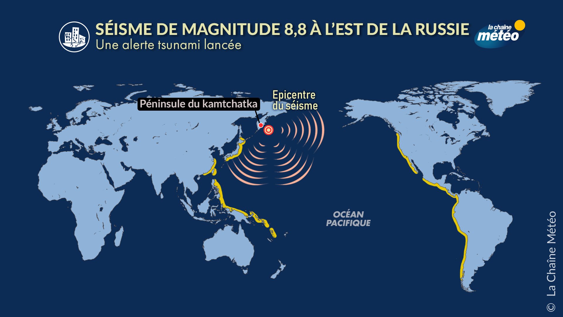 España a 30 de julio del 2025.- El terremoto registrado en la península rusa de Kamchatka, con una magnitud de 8.8 y a una profundidad de 20.7 kilómetros, es el octavo de mayor magnitud que se ha registrado en el mundo, superado este siglo por el ocurrido en Tohoku (Japón) en el año 2011, que alcanzó los 9.1.