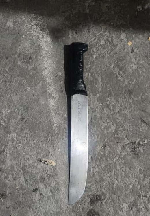 Debido a lo grave de la situación, los uniformados municipales derriban la puerta y observan que había desorden, la joven estaba lesionada y el arma blanca estaba en el suelo.